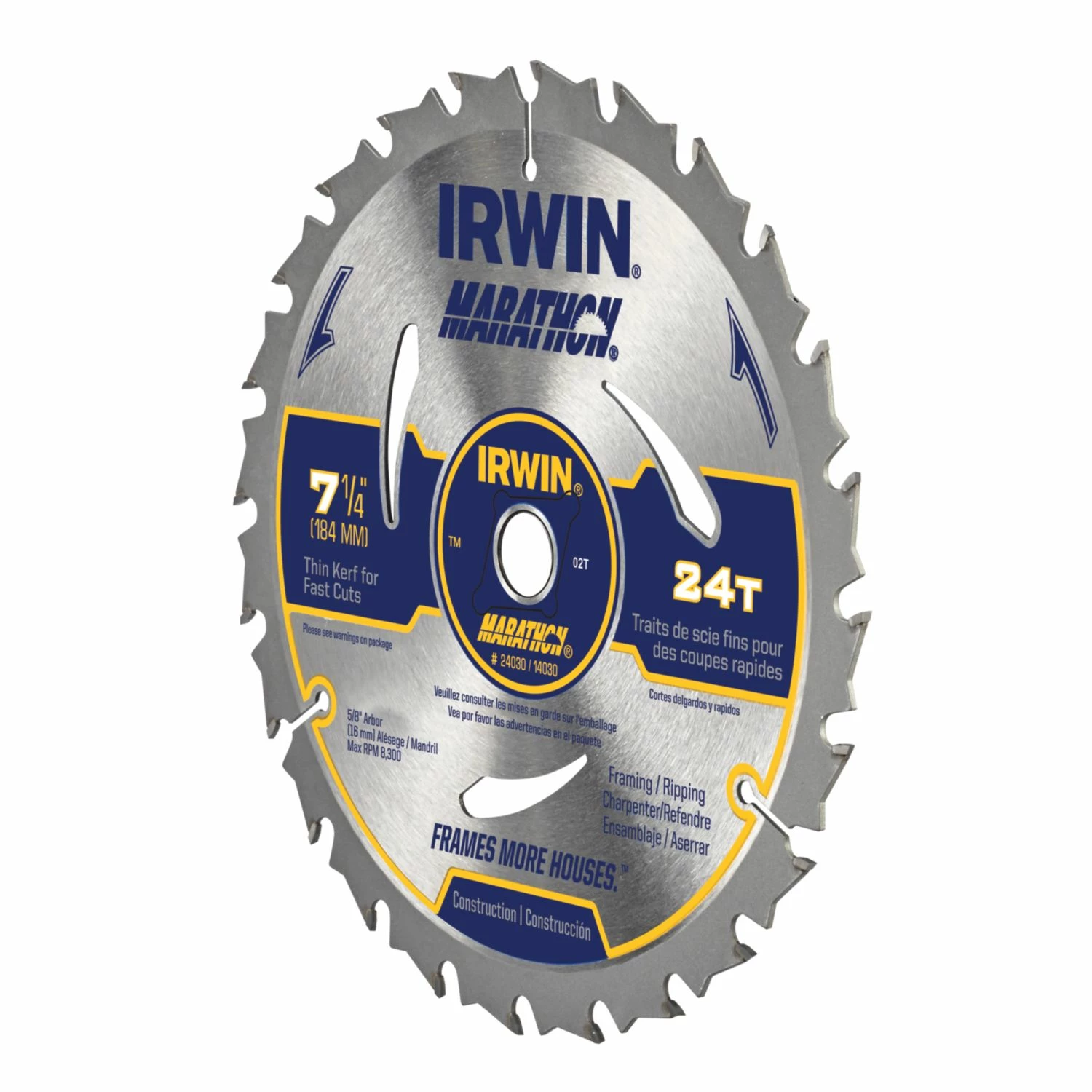 IRWIN Marathon saw blades are designed to meet the heavy demands and pressures of the jobsite. This is why the 7-1/4-in segmented carbide circular saw blade features a new and improved design that doesn’t compromise the durability. Its construction-grade carbide teeth quickly cut through wood and plywood. Every other tooth on this 24-tooth framing and ripping blade is thinner, ensuring up to 20% faster cuts. Because of its thin and sleek kerf, the blade requires 40% less effort from you. Meanwhile, the heat/vent and expansion slot design minimizes vibrations. This results in straighter, smoother cuts. Shop this IRWIN Marathon saw blade today.