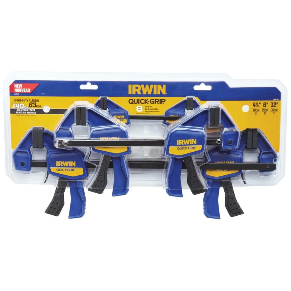- Includes (2) 4-1/4-in Micro One Handed bar clamps, (2) 6-in Mini One Handed bar clamps and (2) 12-in Mini One Handed bar clamps