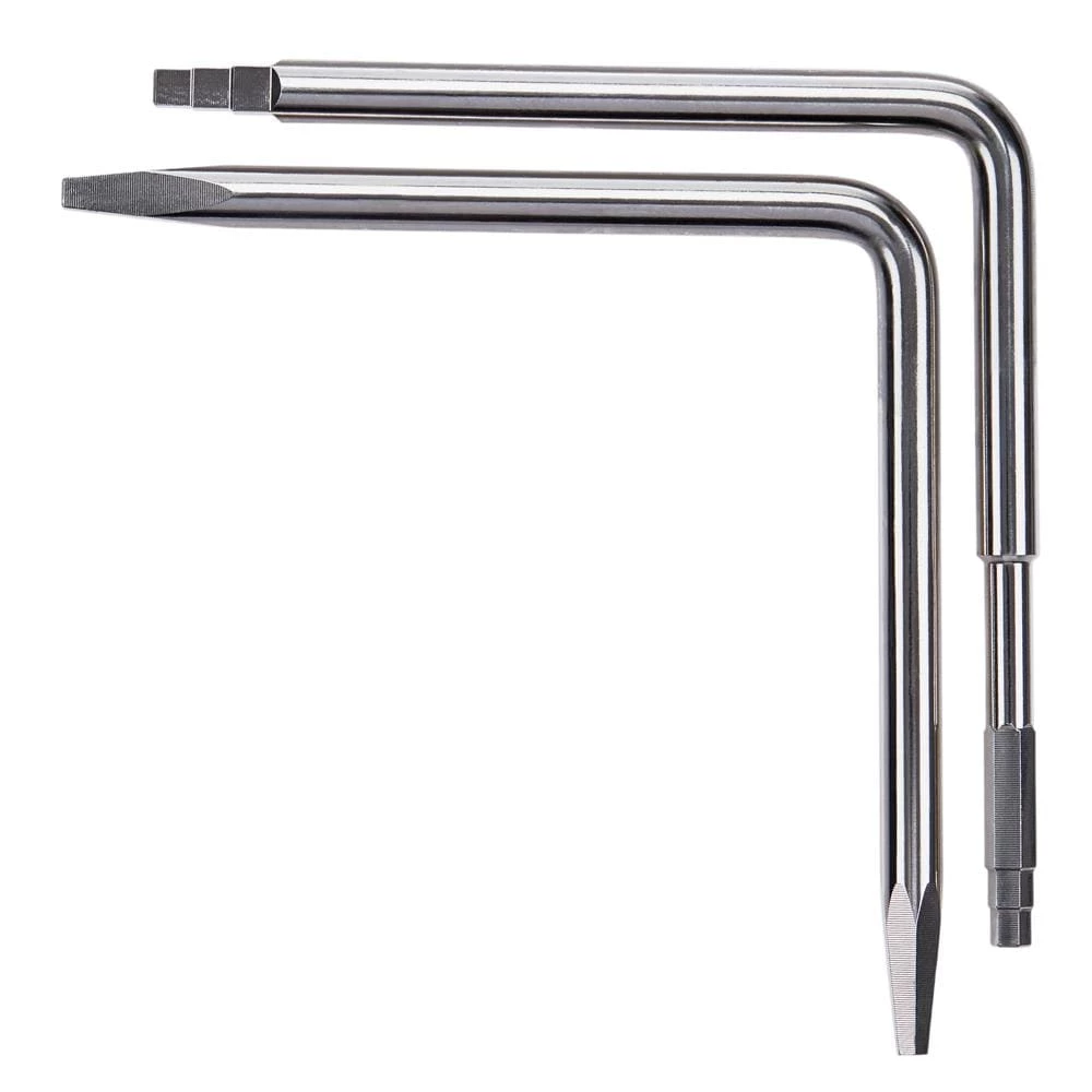 - Tapered wrench features both hex and square keys