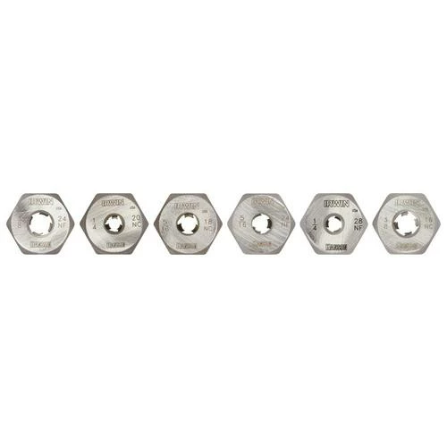 | Package Contents | 6 fractional dies: one 1/4-in 20NC, one 1/4-in 28NF, one 5/16-in 18NC, one 5/16-in 24NF, one 3/8-in 16NC, and one 3/8-in 24NF |