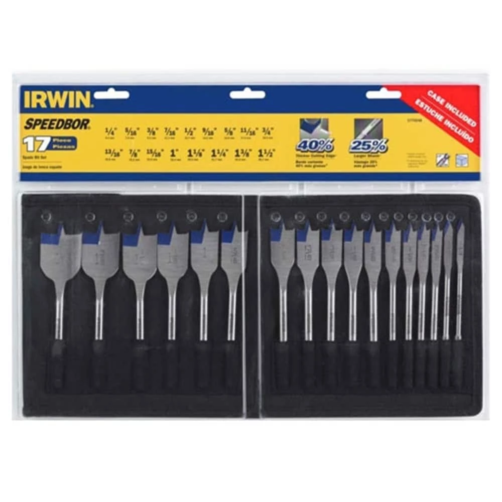 - 1/4-In, 5/16-in, 3/8-in, 1/2-in, 9/16-in, 5/8-in, 3/4-in, 13/16-in, 7/8-in, 15/16-in, 1-in, 1-1/8-in, 1-1/4-in, 1-3/8-in, 1-1/2-in bits included