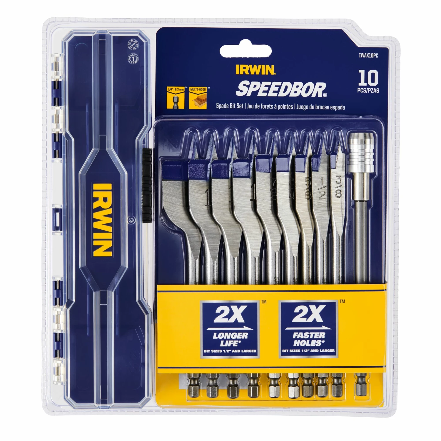 Next-generation SPEEDBOR® Spade Bits feature a patented Blue-Groove cutting edge which allows for aggressive removal of wood chips and fast drilling.