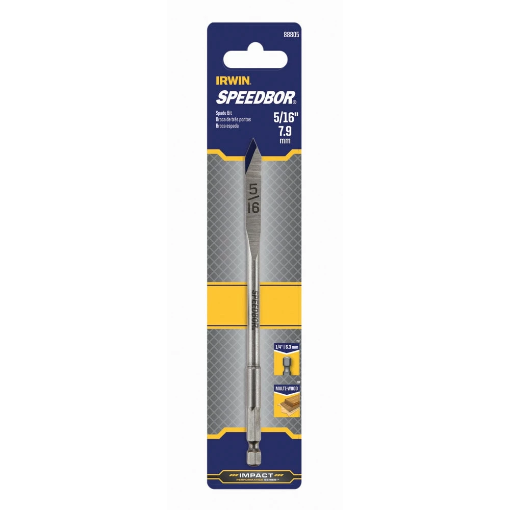 - Includes (1) IRWIN SPEEDBOR Spade Bit 5/16-in x 6-in